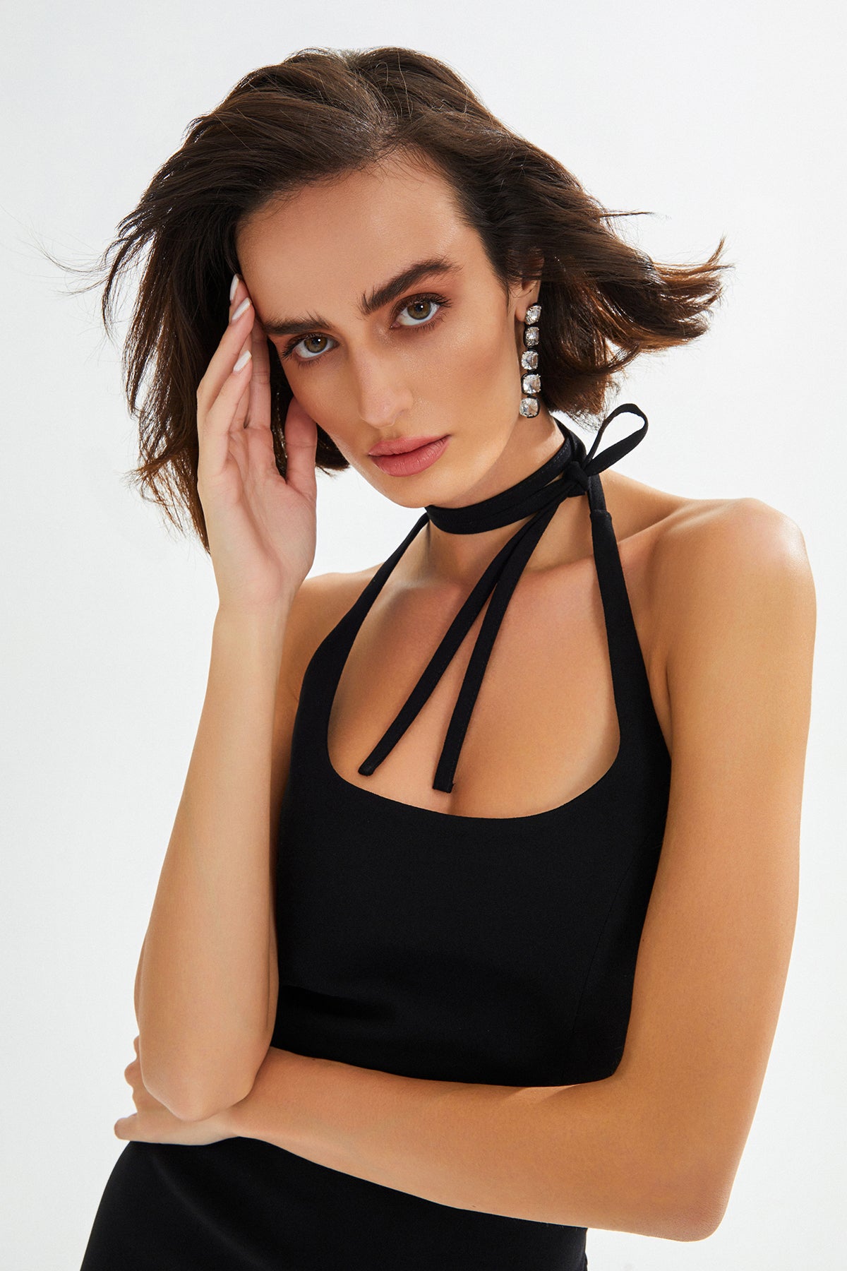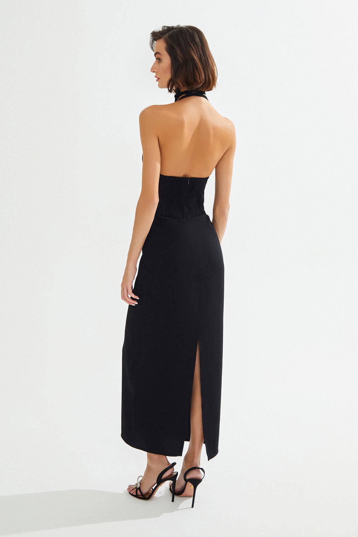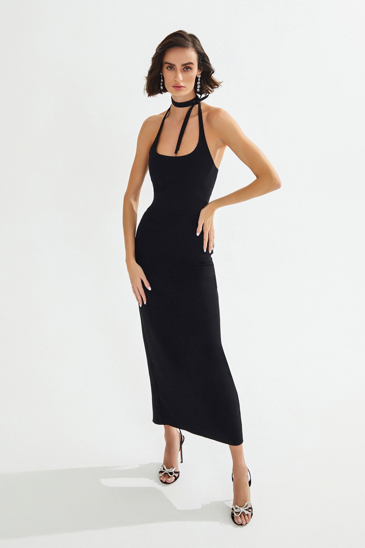 BRESLIN Boyundan Bağlamalı Midi Siyah Elbise