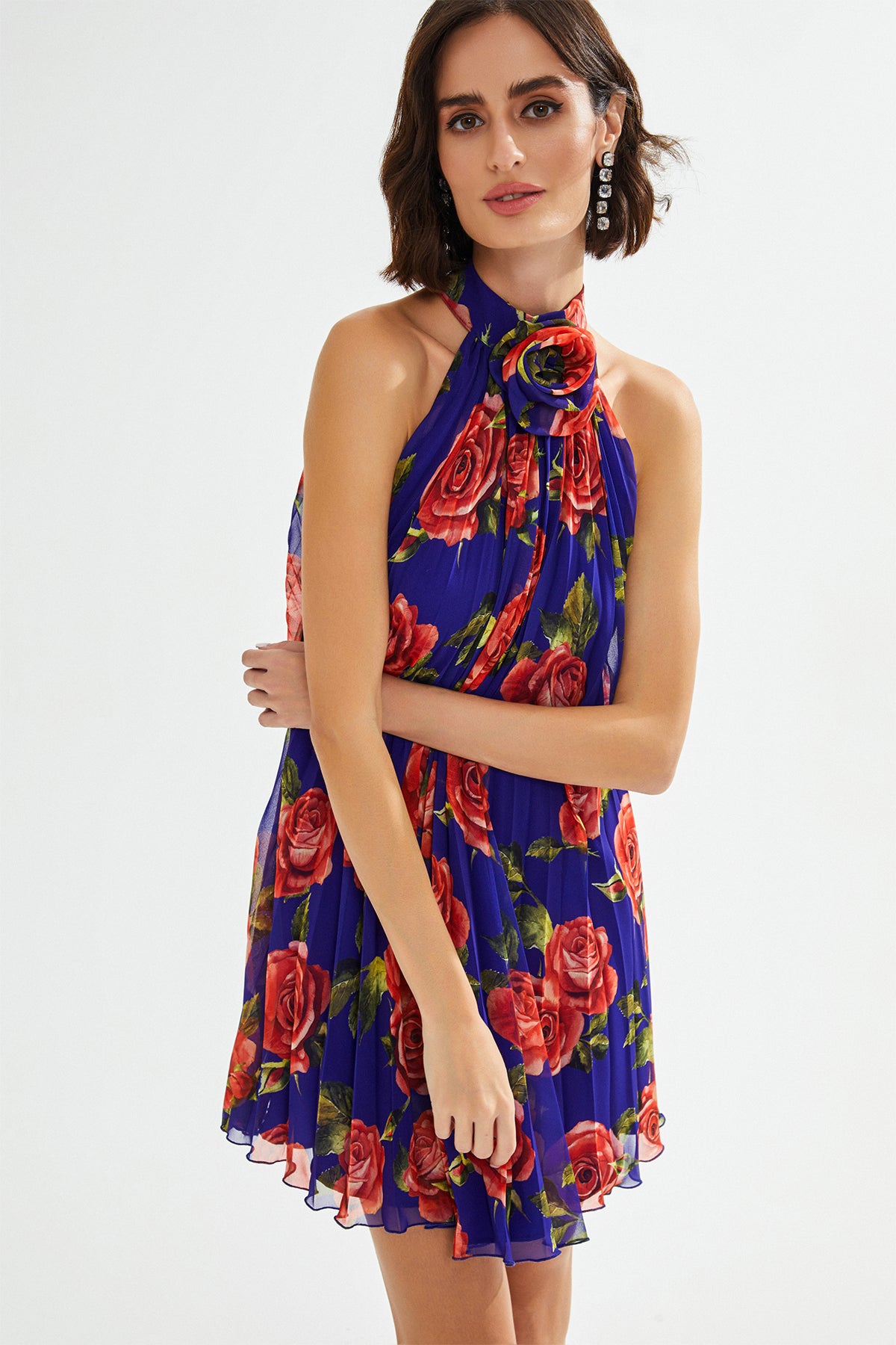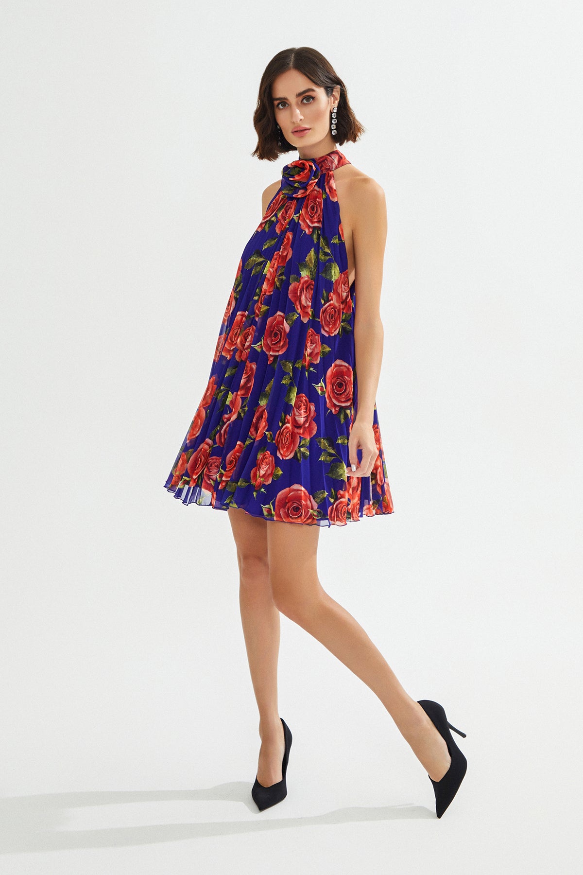 KALLIE Çiçek Desenli Pliseli Mini Elbise