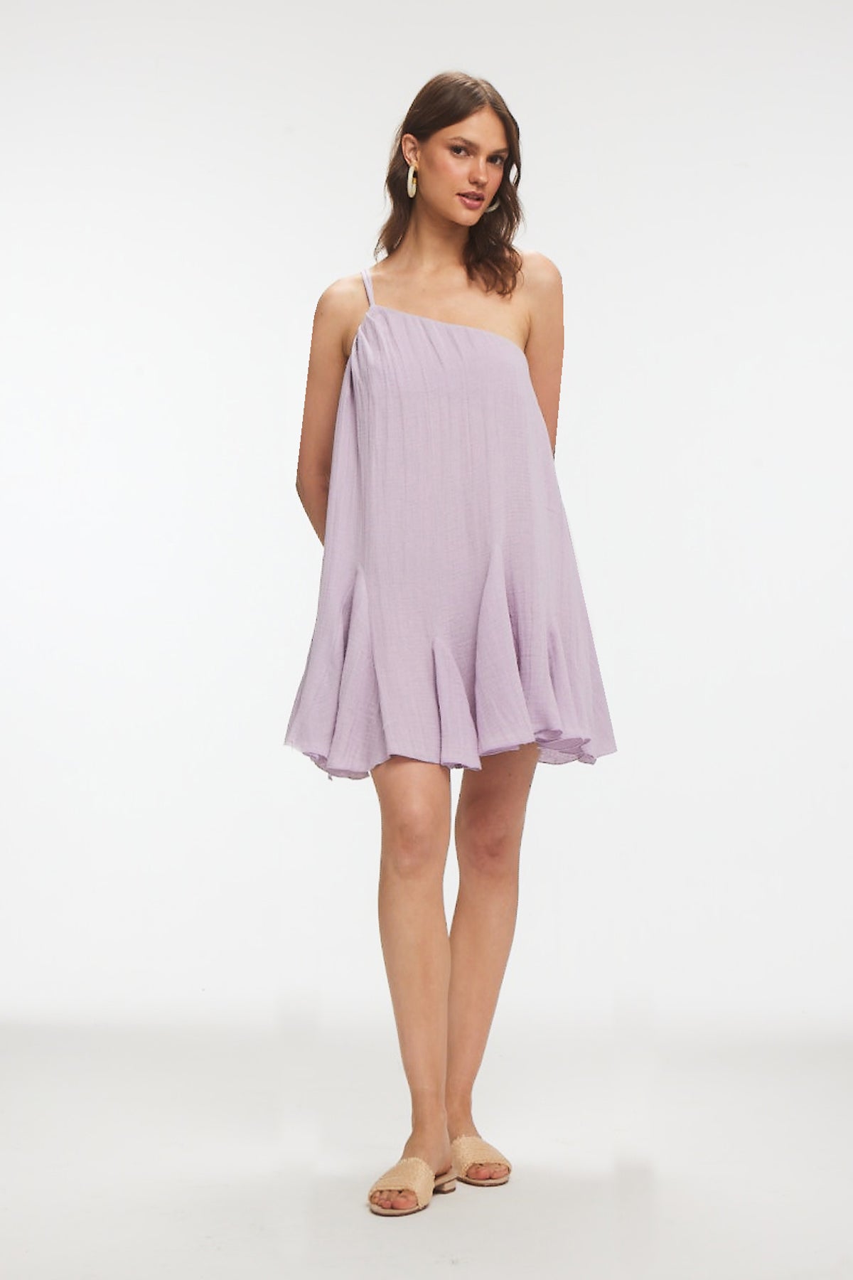 MONA Müslin Mini Volanlı Lila Elbise
