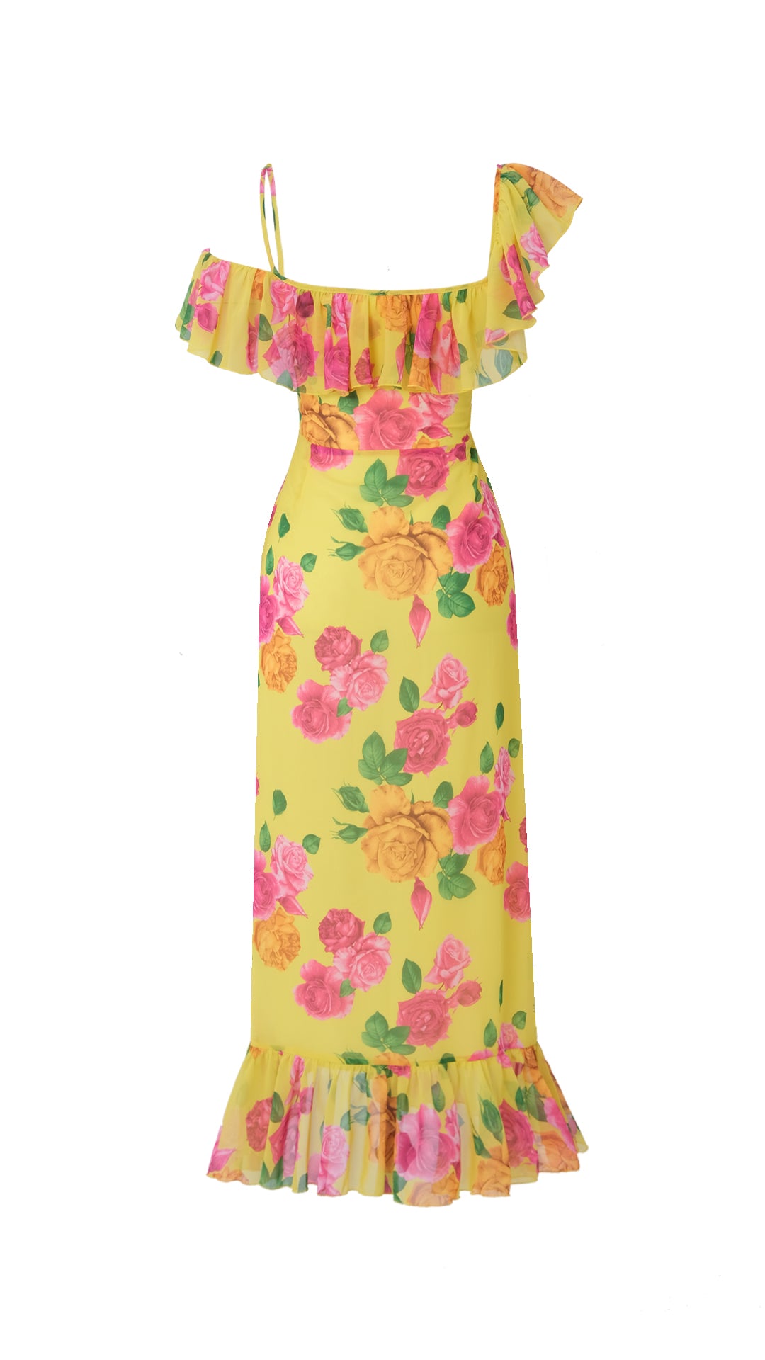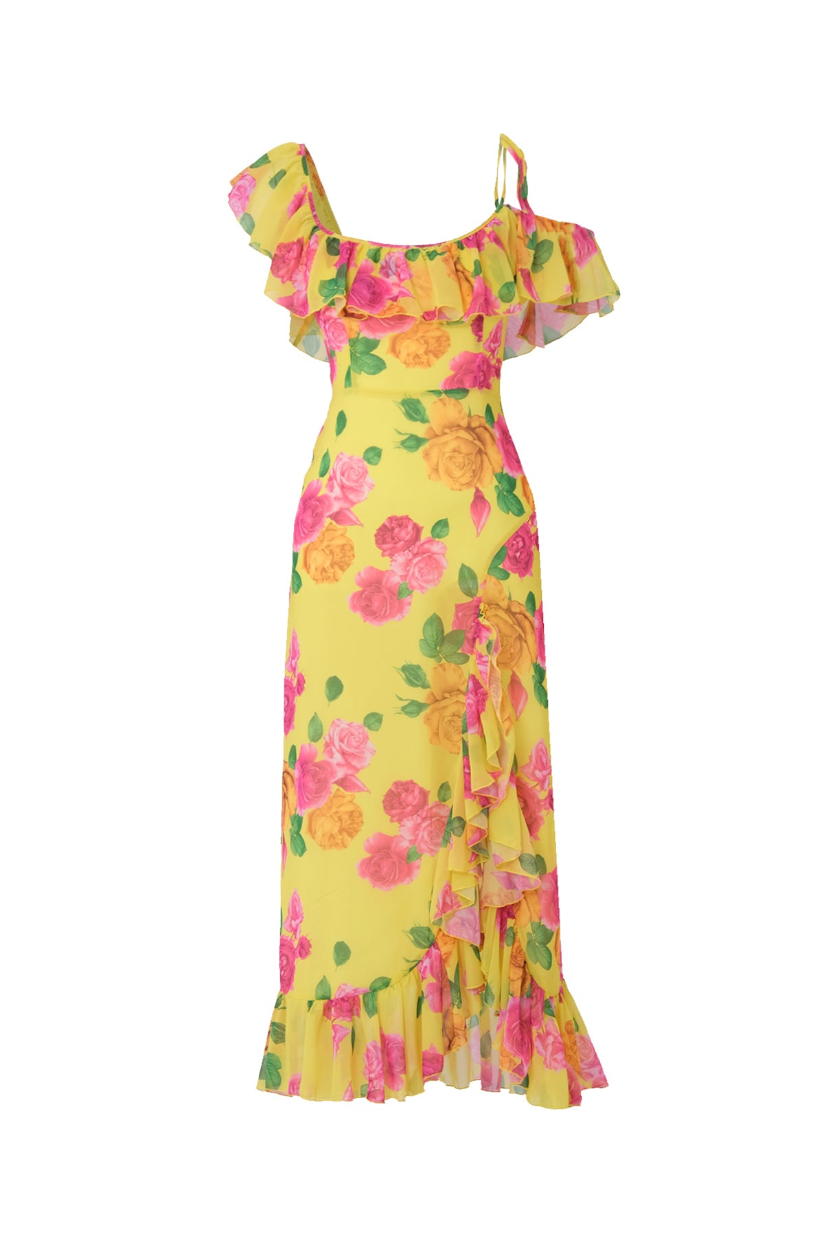 CARMINE Çiçek Desenli Sarı Şifon Midi Elbise