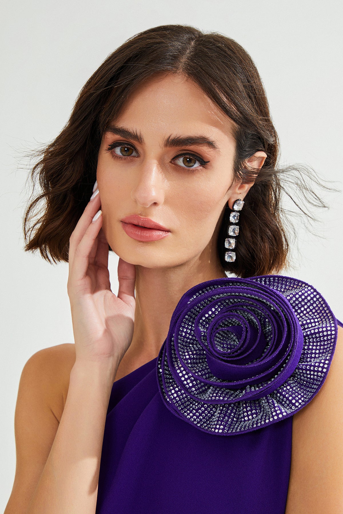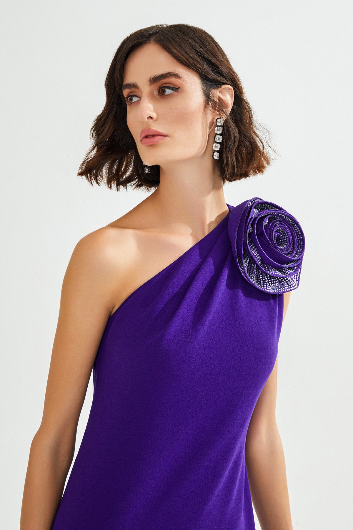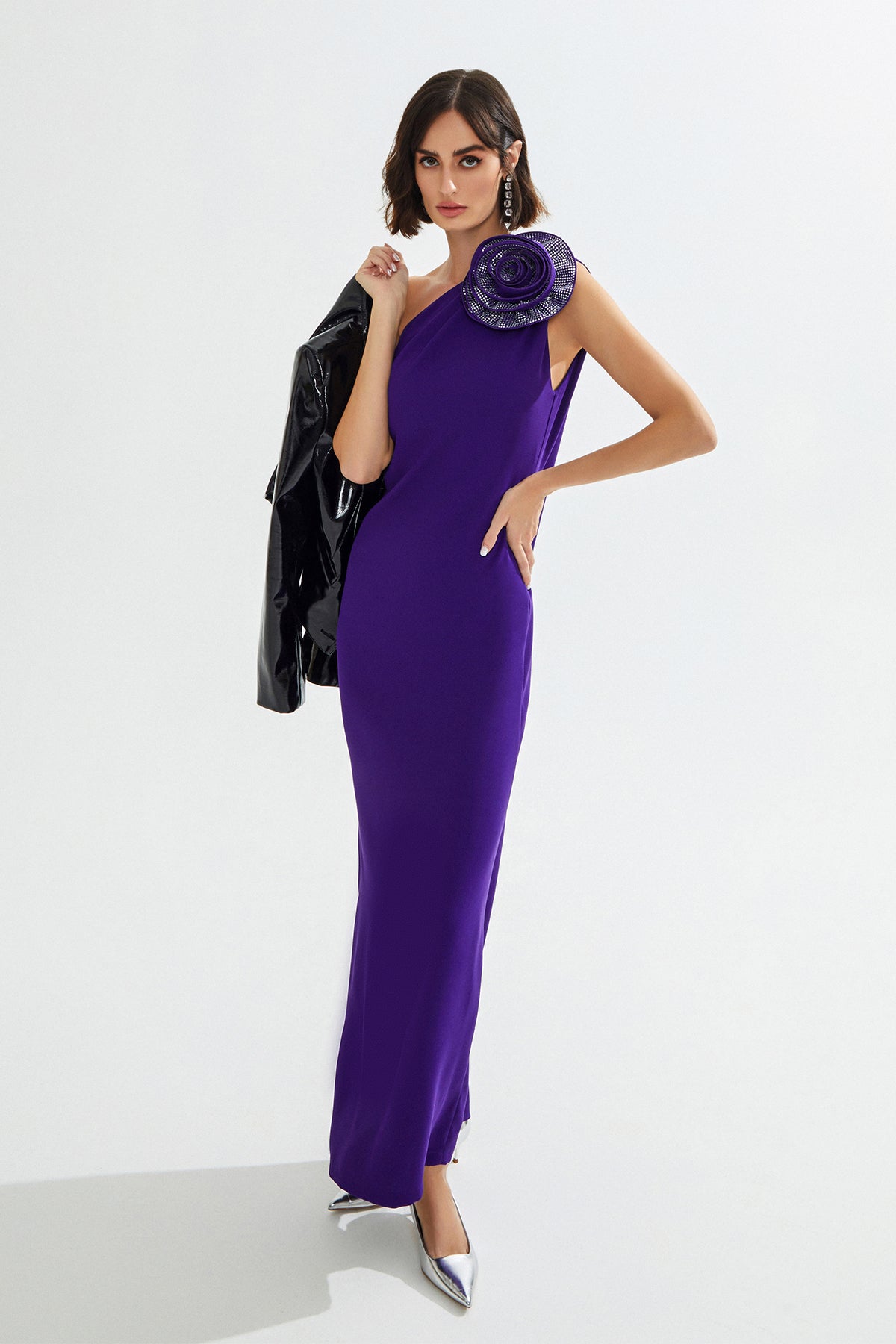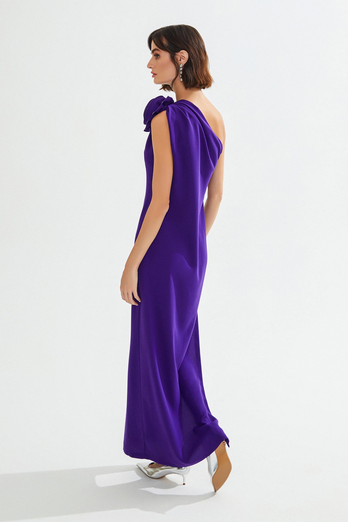 GENNIE Tek Omuz Çiçek Detaylı Mor Maxi Elbise