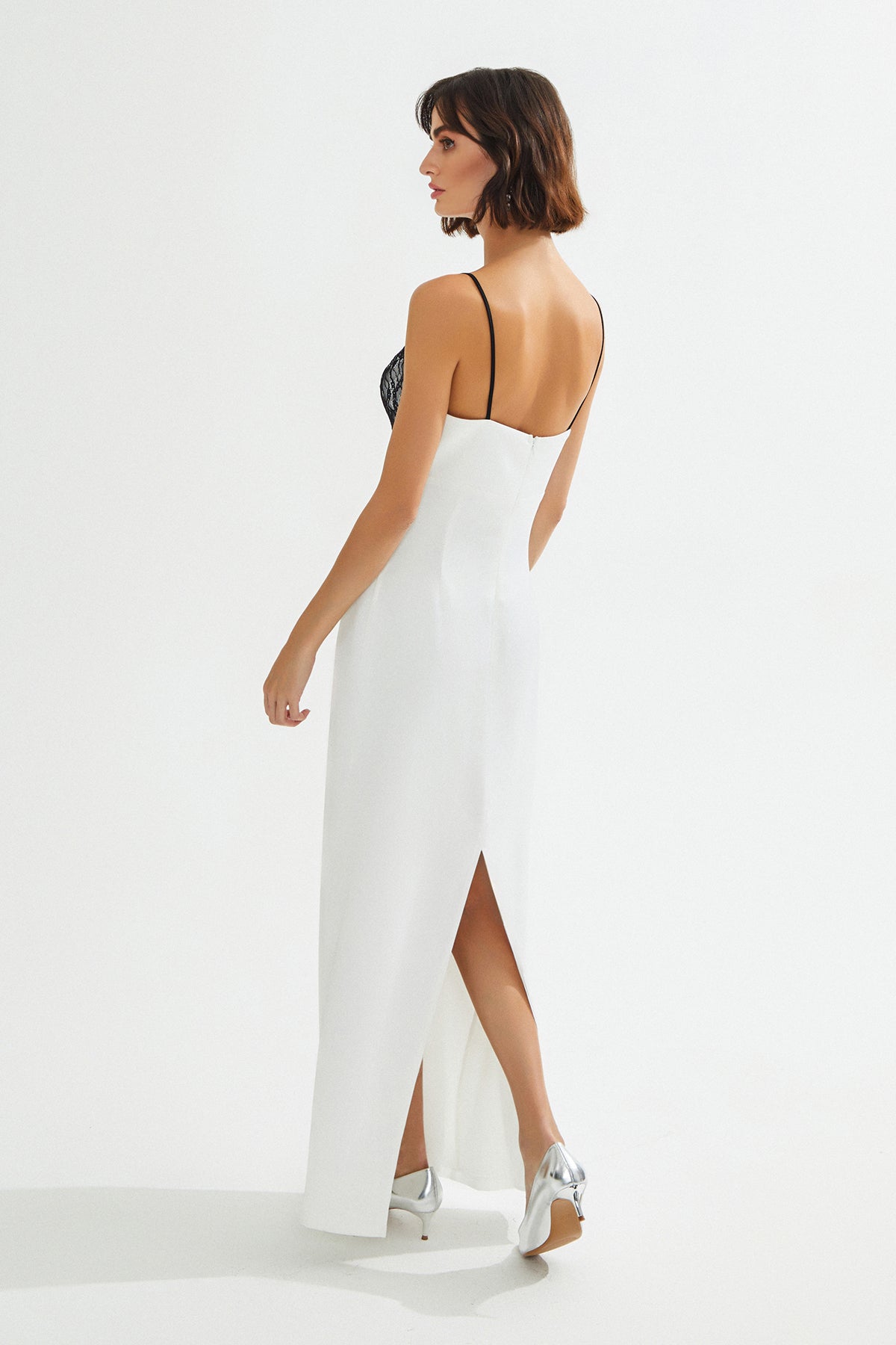 KARISSA Göğüs Dantel Detaylı Midi Beyaz Elbise