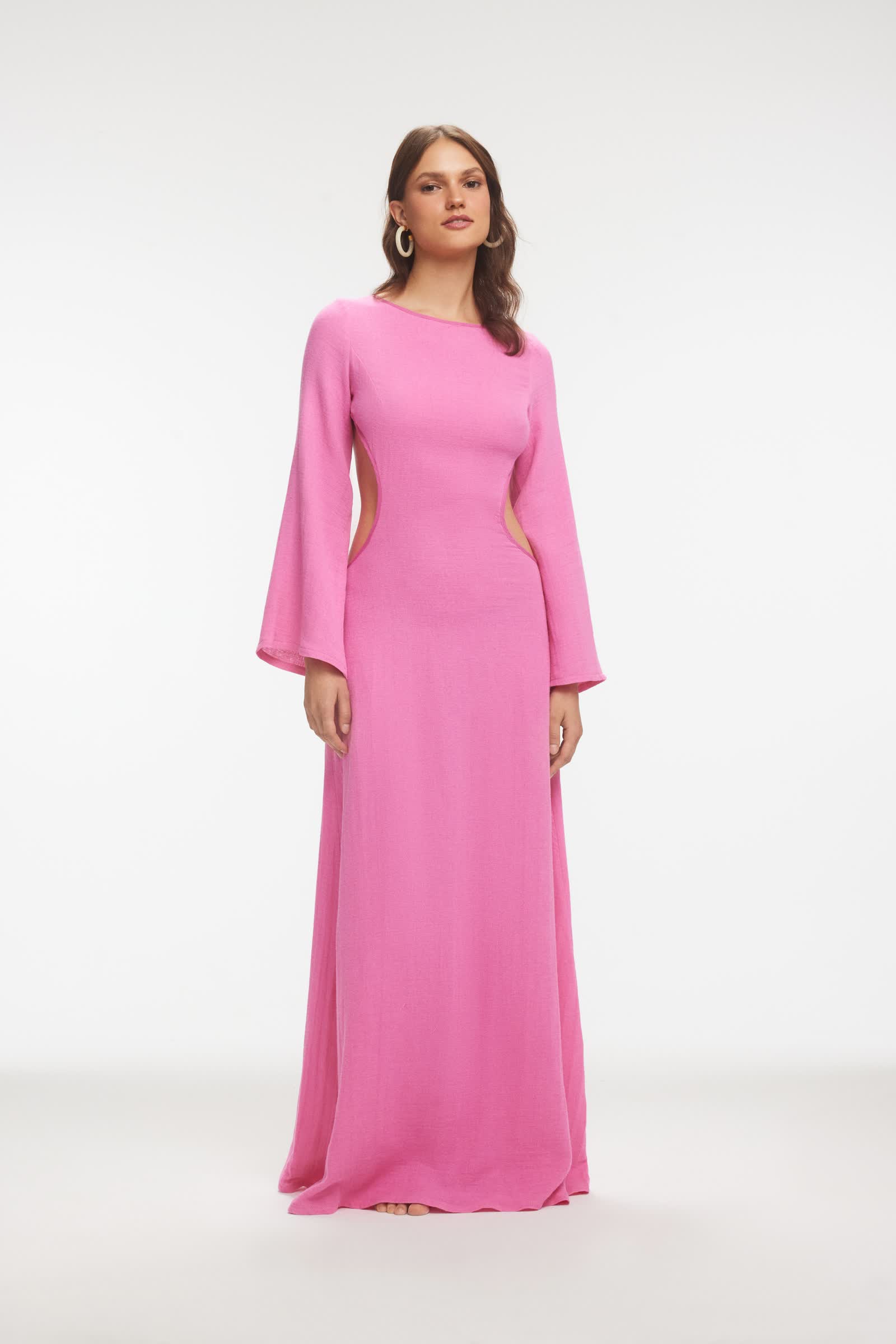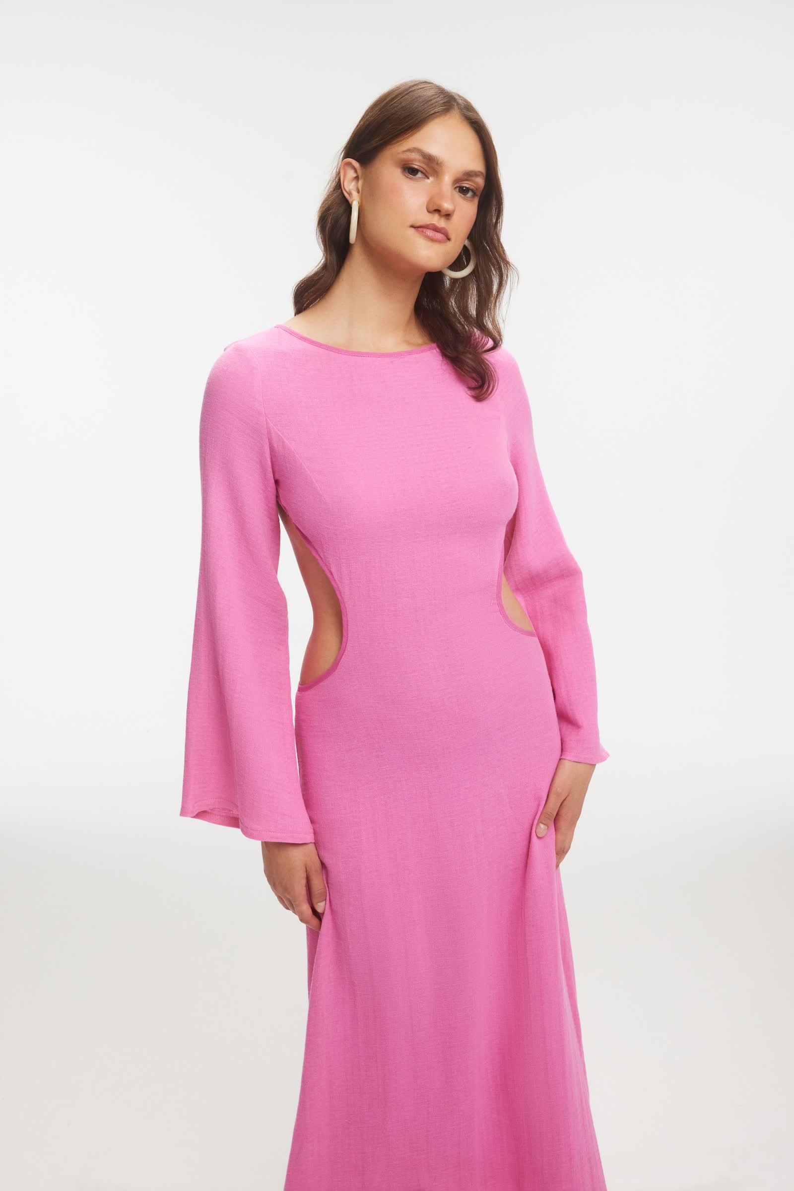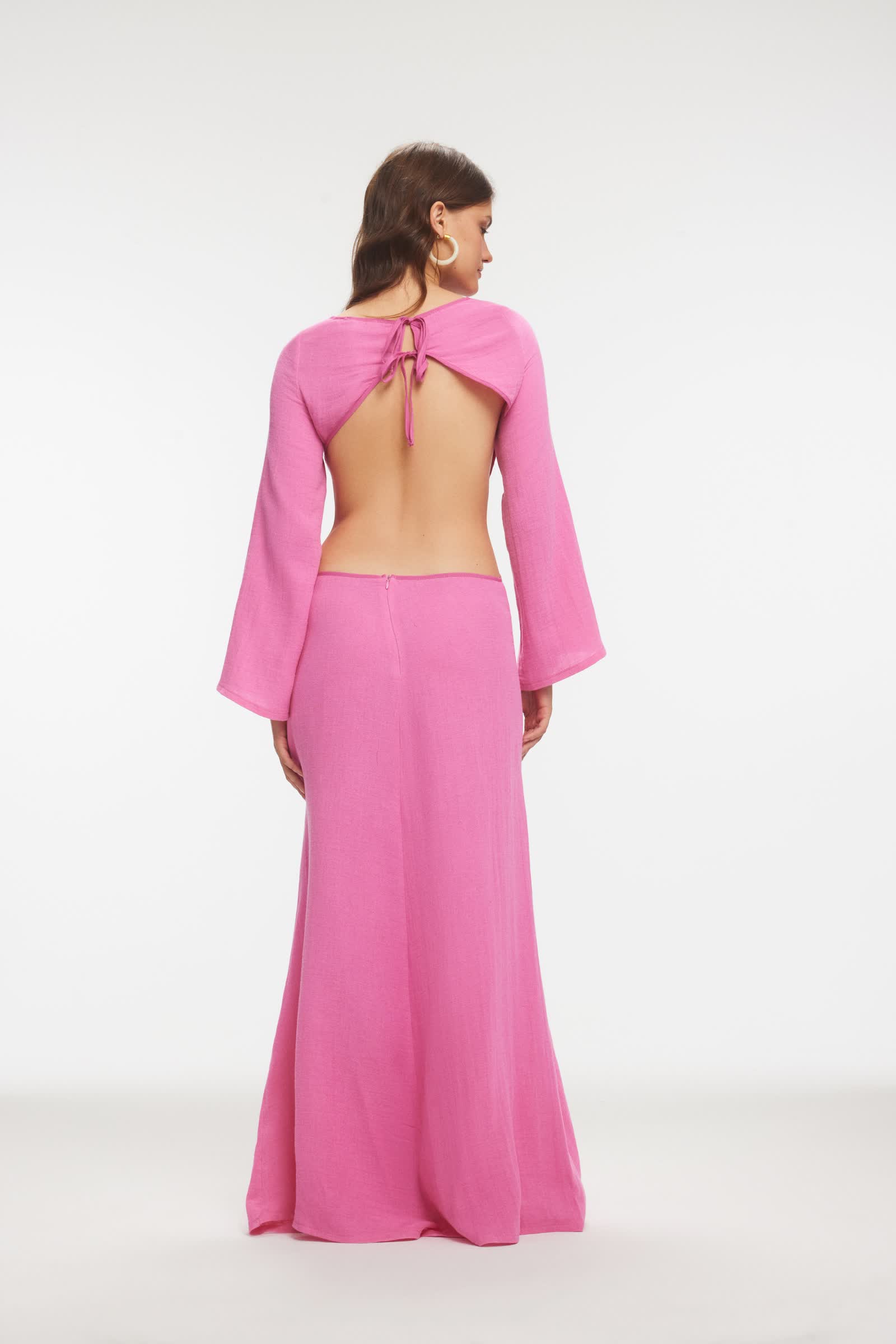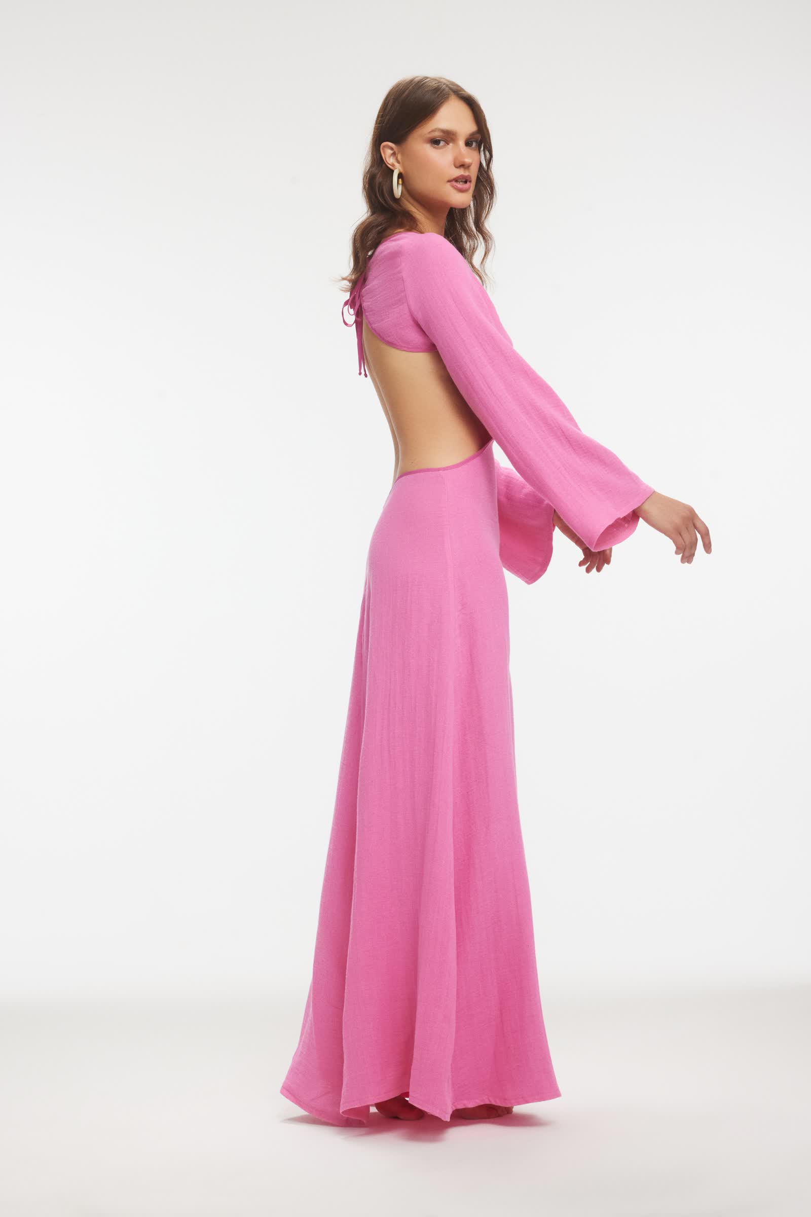 KAYE Sırt Dekolteli Pembe Müslin Maxi Elbise