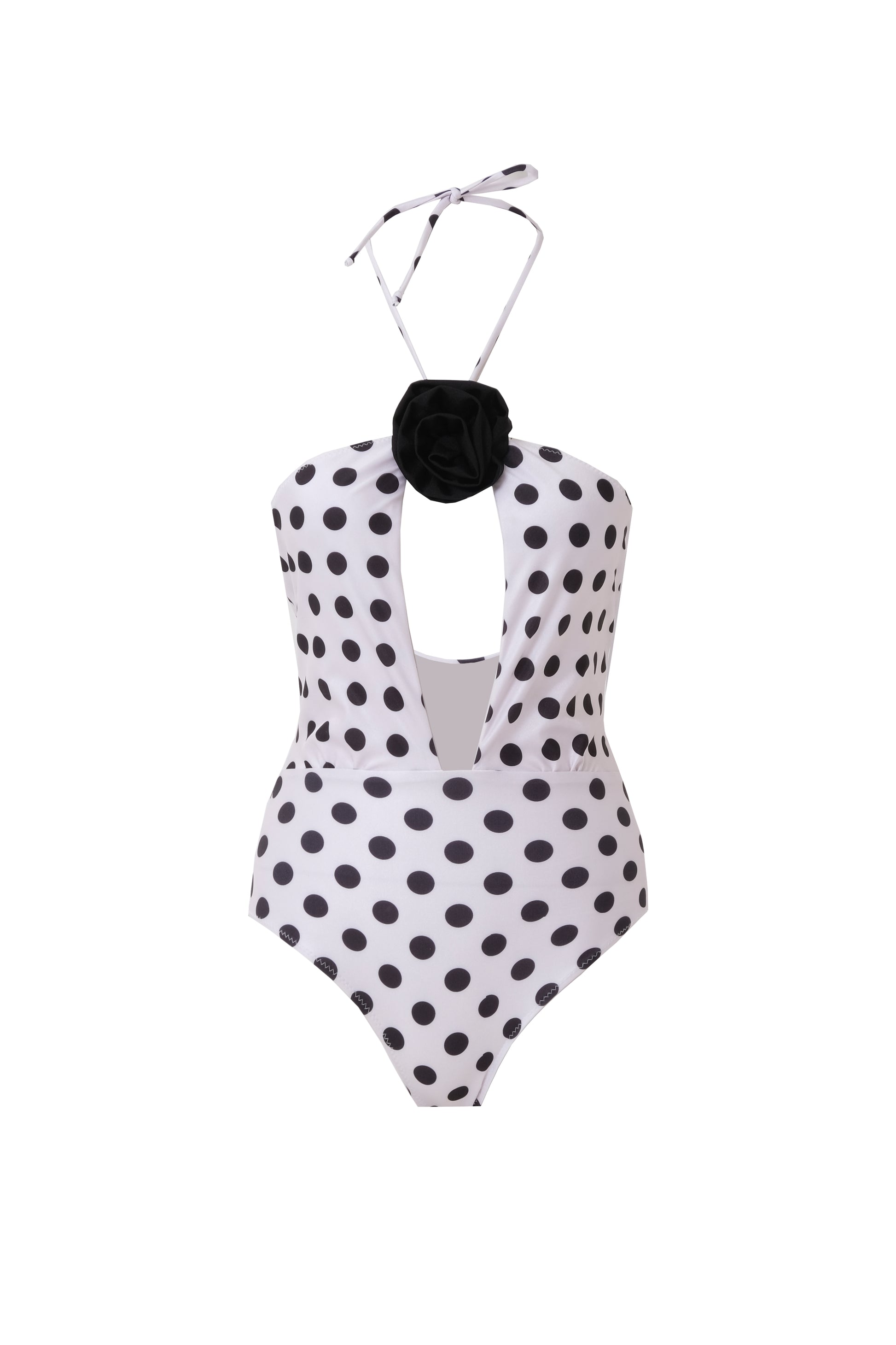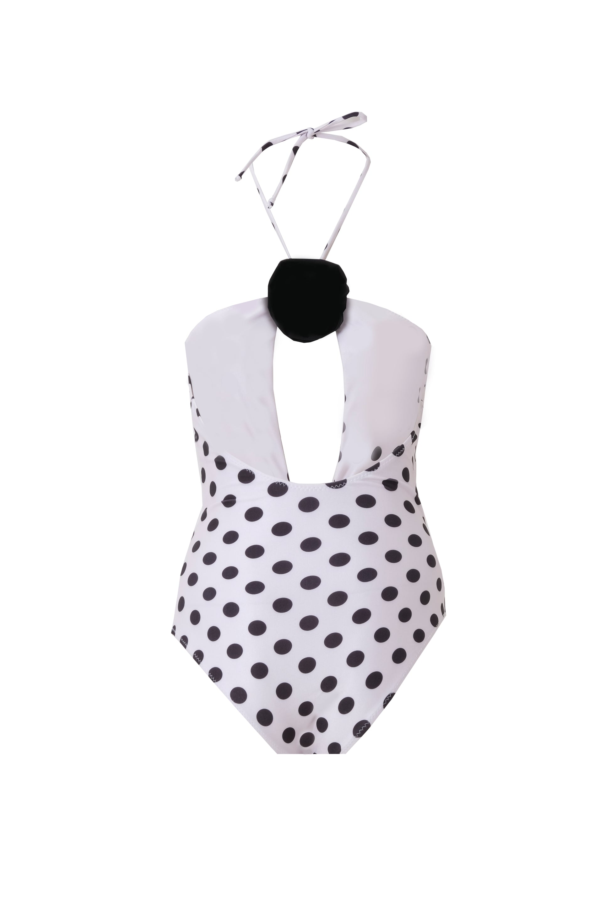 KLOIE Puantiye Desenli Gül Detaylı Mayo
