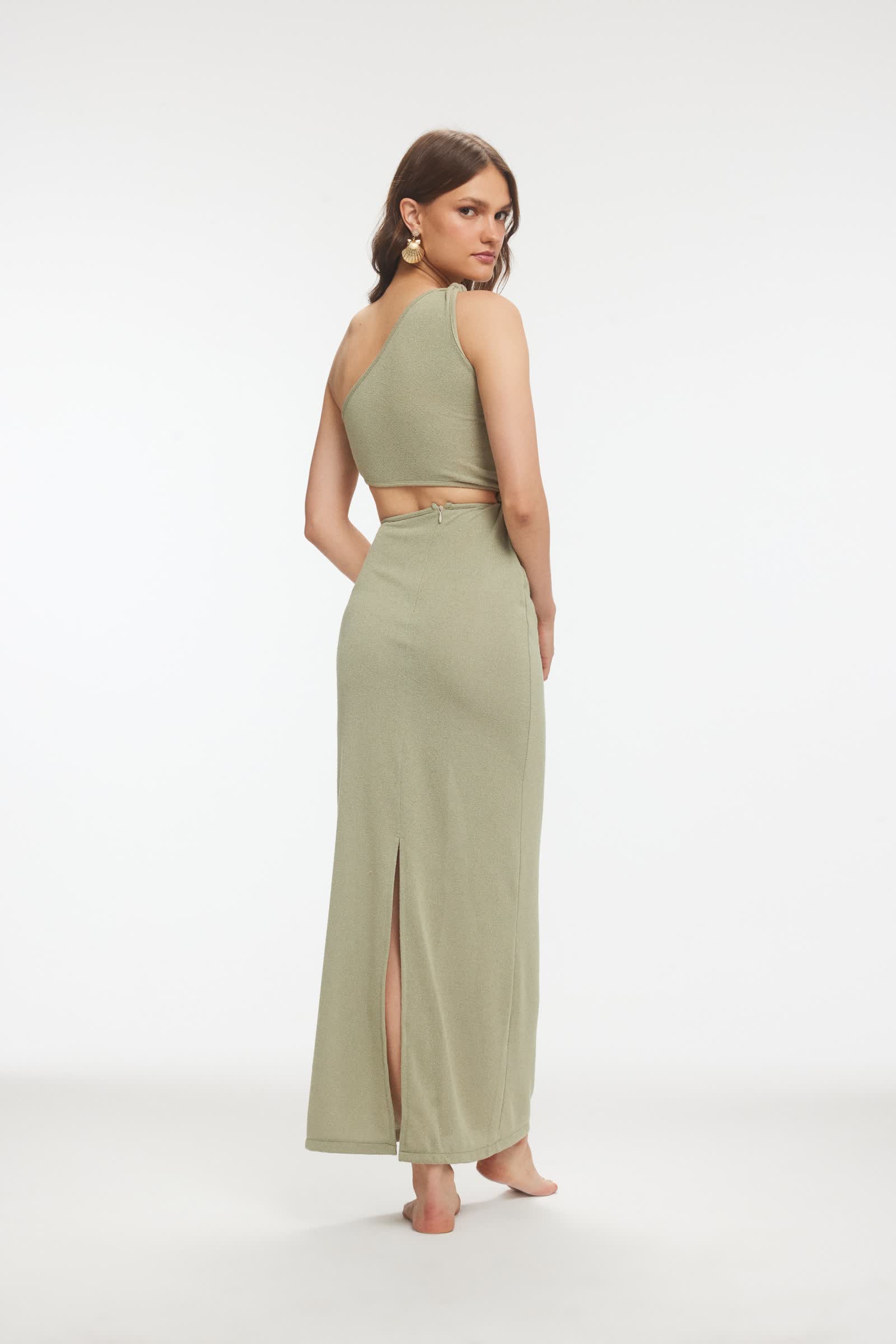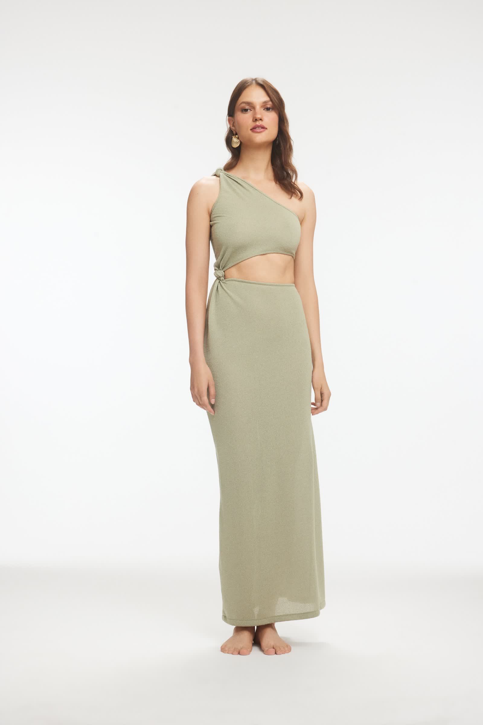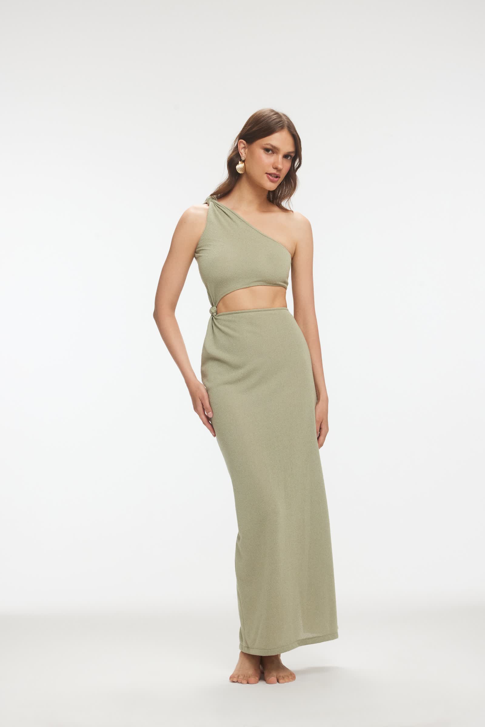 LEWA Düğüm Detaylı Örme Midi Yeşil Elbise