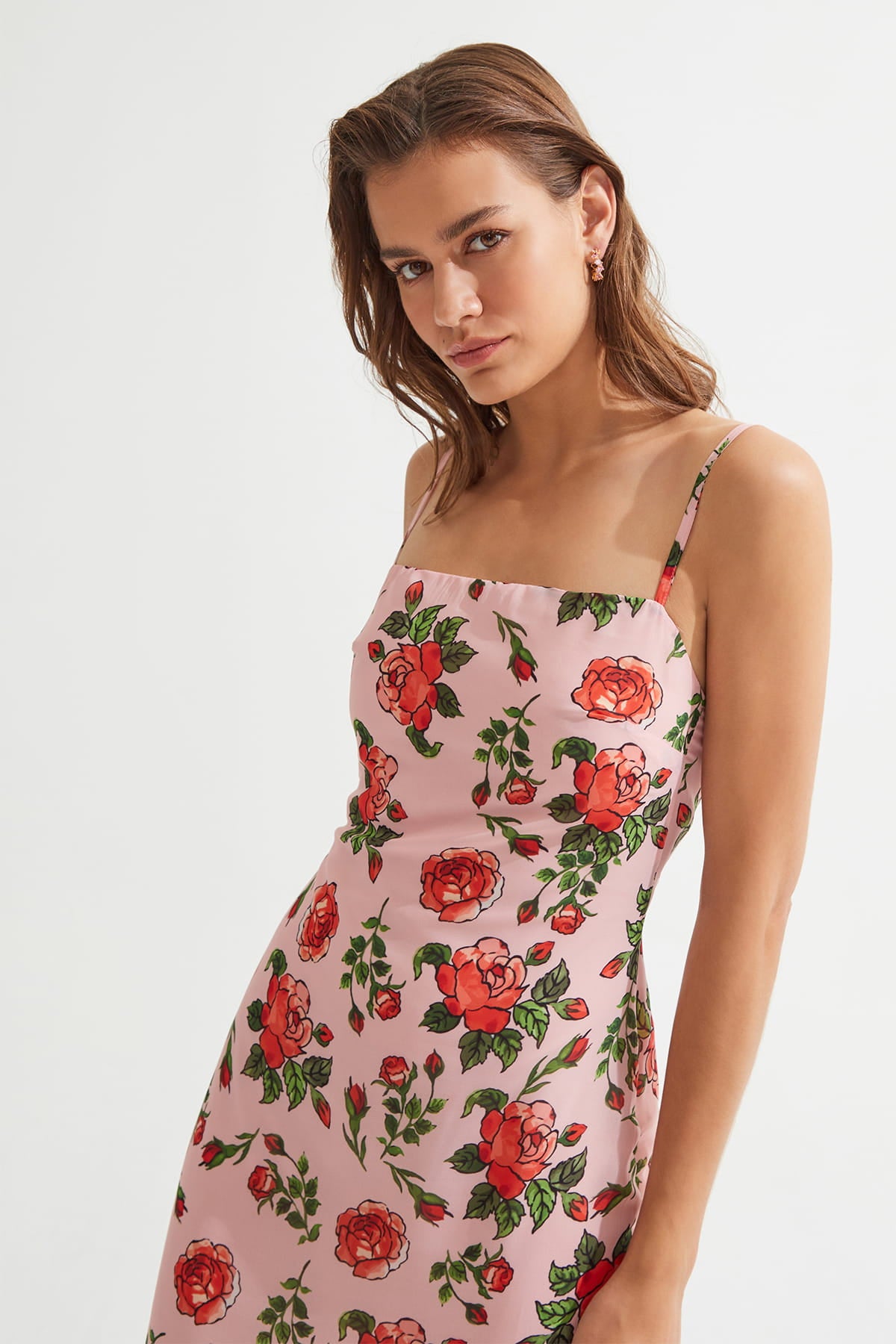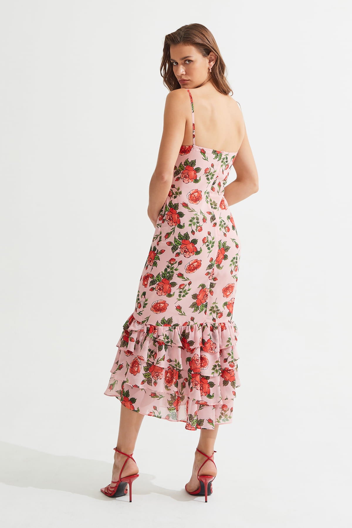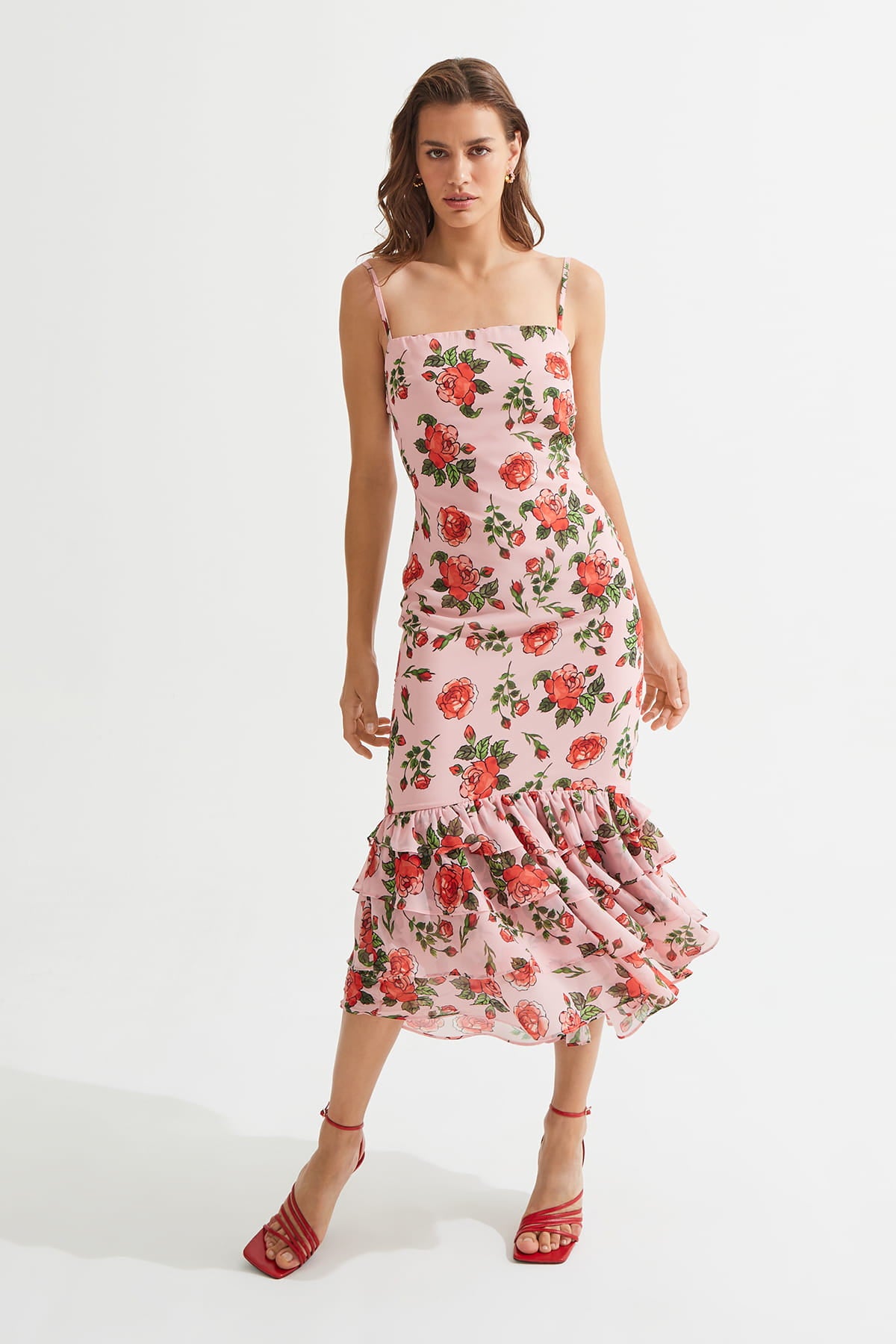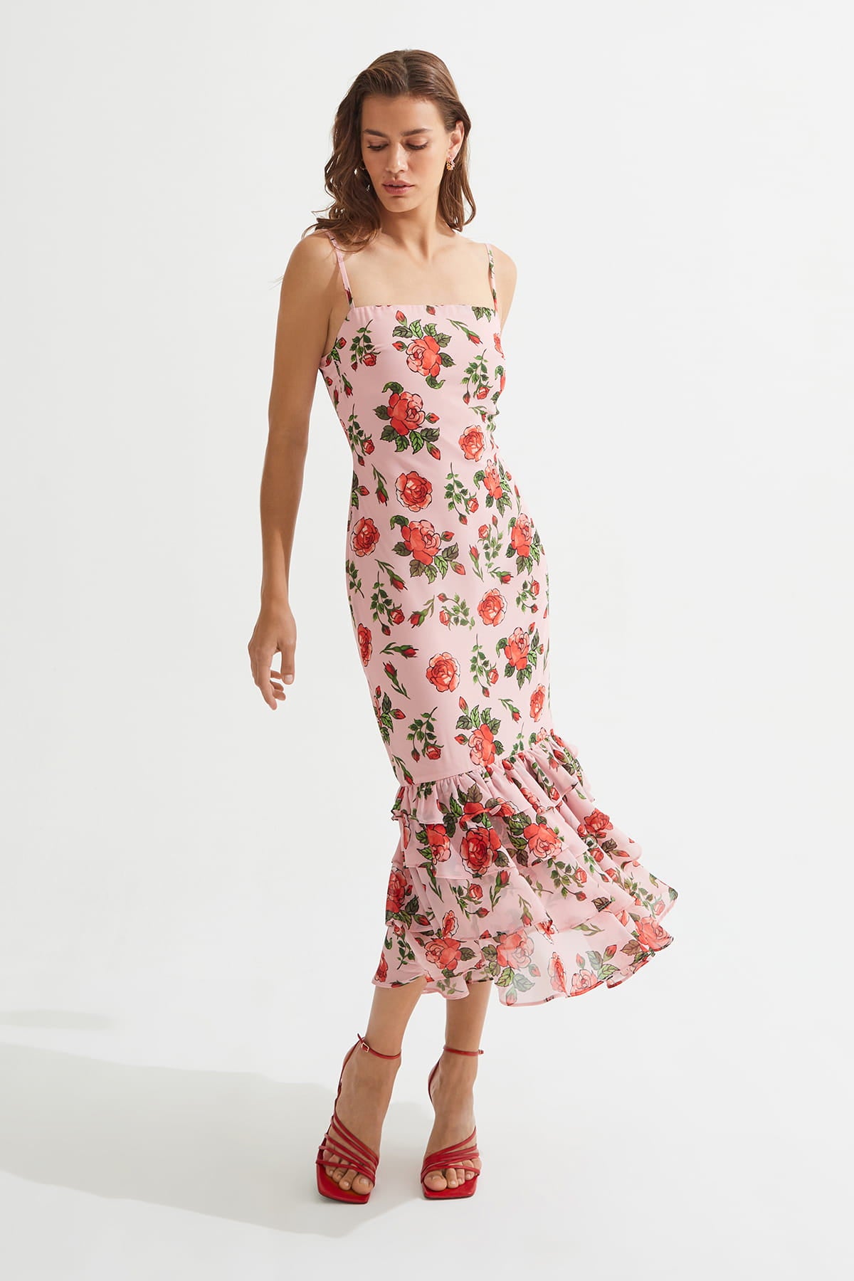 LOVELLA Çiçek Desenli Midi Pembe Elbise