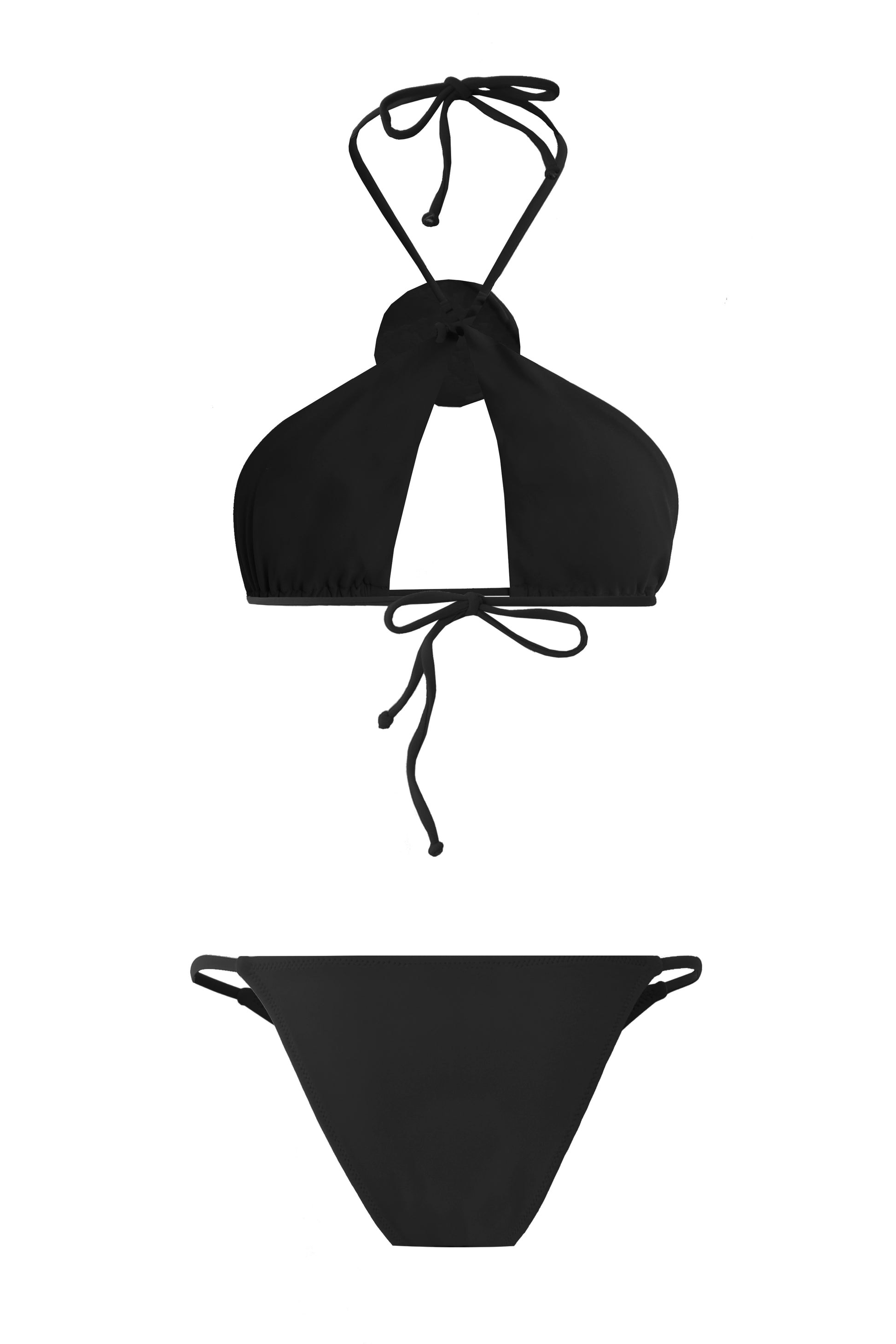 LUNA Çarpraz Bağlamalı Güllü Siyah Bikini Takım