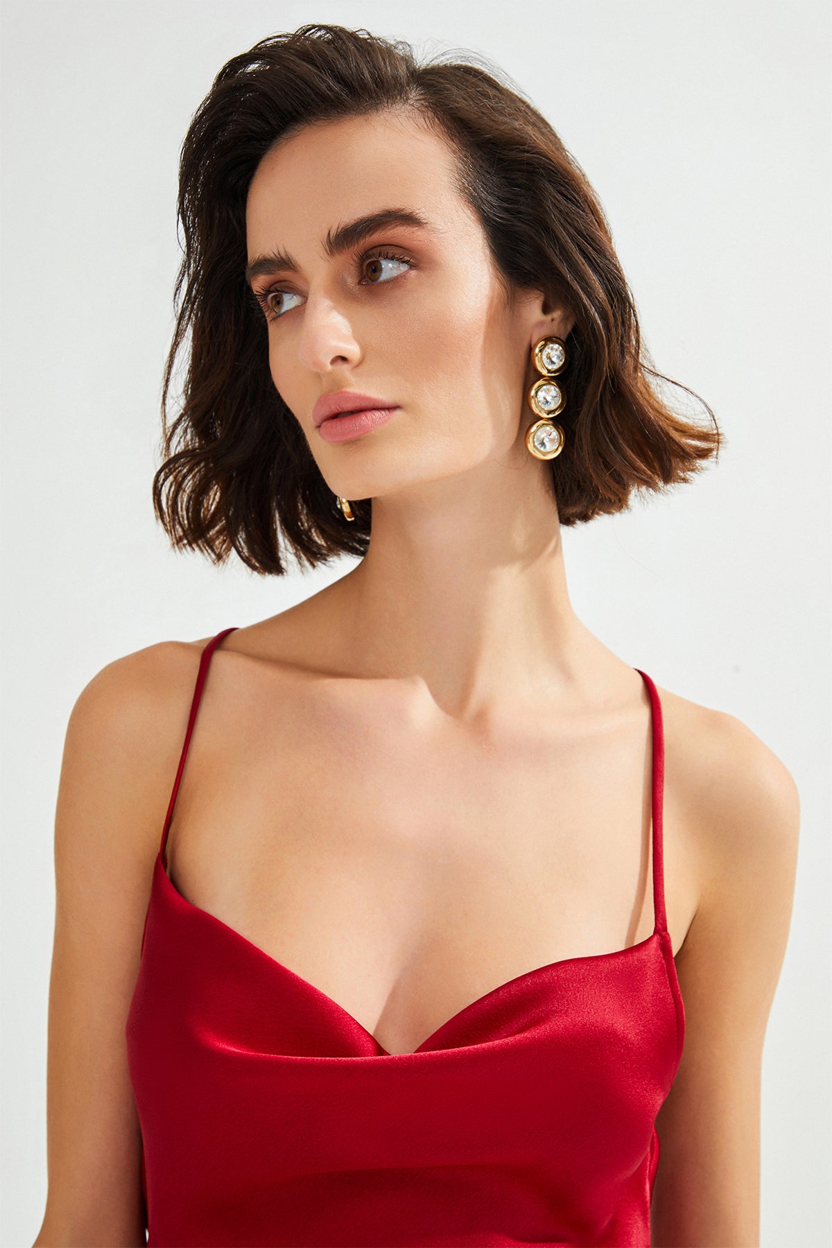 NANCY Sırt Detaylı Mini Saten Kırmızı Elbise