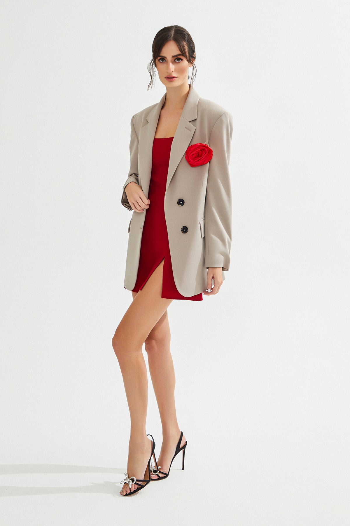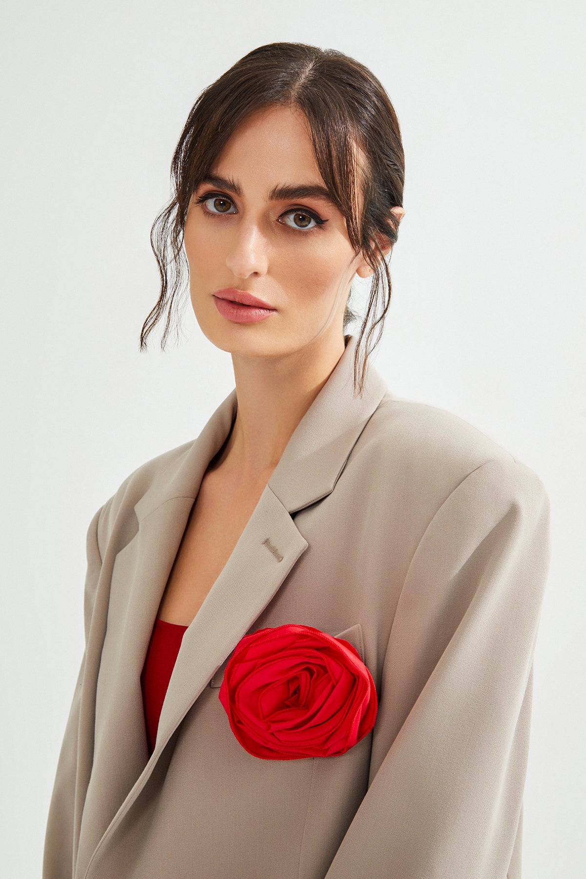 VIAN Gül Detaylı Bej Blazer Ceket