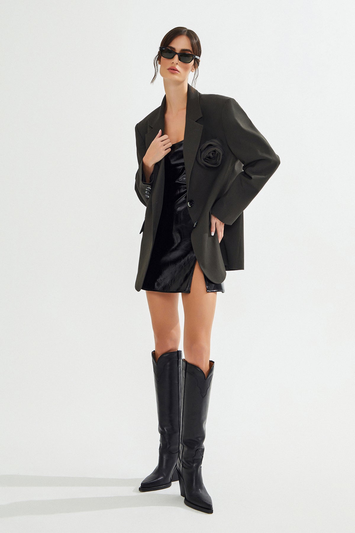 • Modelin ölçüleri : Boy: 178 cm Göğüs: 83 Bel: 63 Kalça: 89. Giydiği ürün S bedendir.